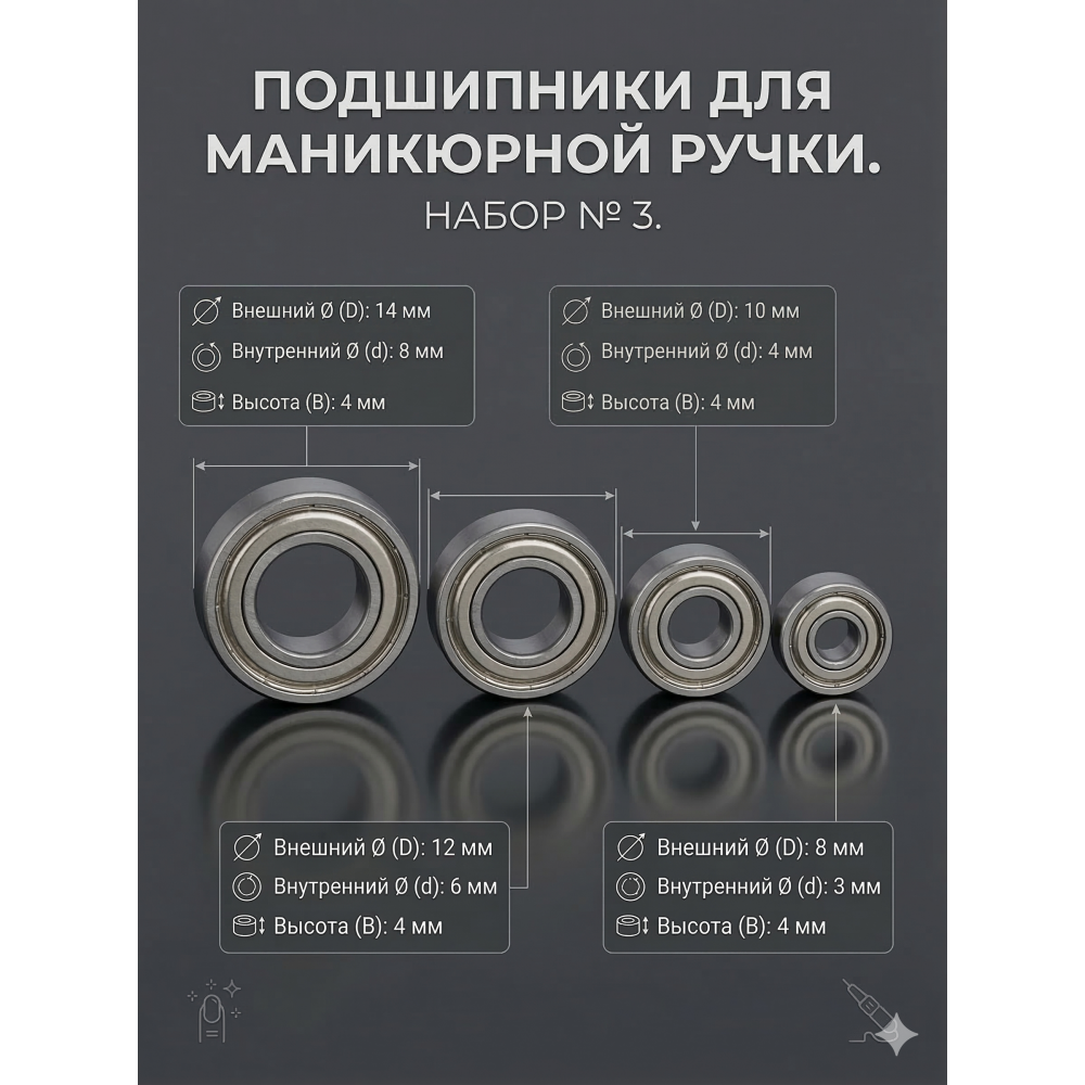 Набор подшипников №3 для маникюрной ручки 4 шт 1480, 1260, 1040, 830