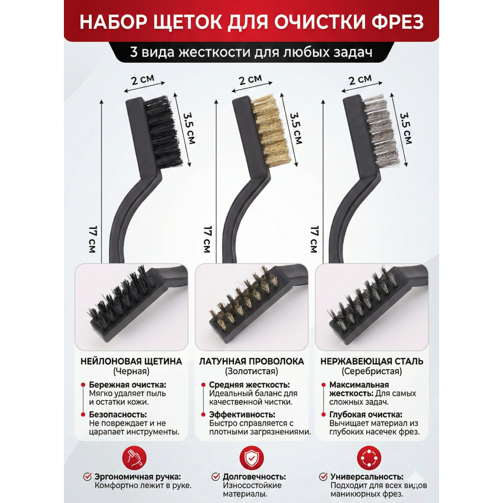 Характеристики щетка для очистки фрез, запчастей и корпуса маникюрного аппарата