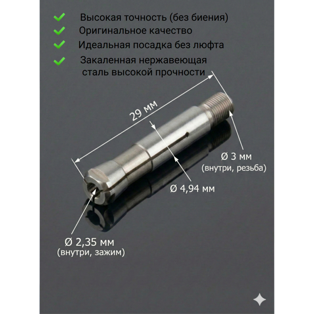 Диаметр зажимаемого хвостовика: 2.35 мм (стандарт).